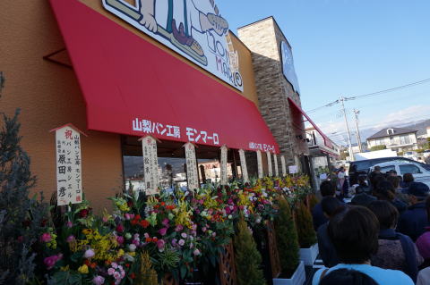 レジで前の女性客が「(開店祝いの)表に飾ってある生花をご自由にお持ちください」と言われていた。