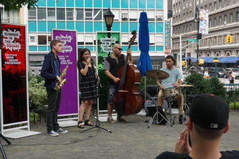 ジャクソン広場でも子供達のジャズバンドが元気に演奏している。