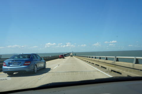 郊外のポンチャントレーン湖(琵琶湖の3倍の大きさ)に架かる世界最長のコーズウェイブリッジ。