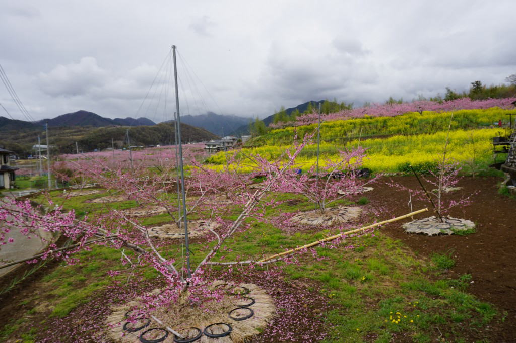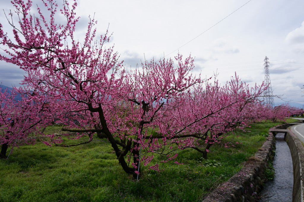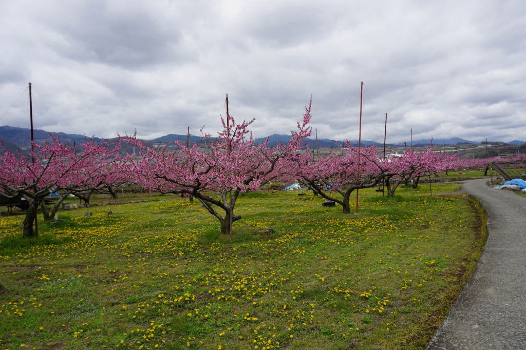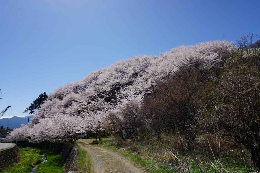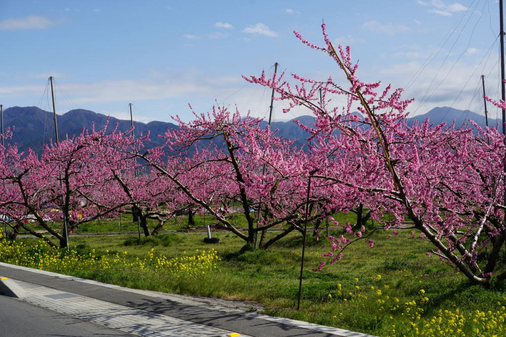 快晴の南アルプスと桜、心洗われる景色だナ。