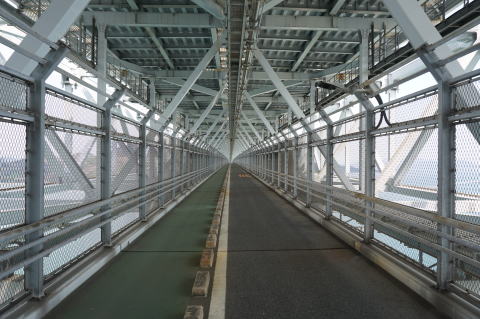 笛吹川に合流する中小の河川には自転車、歩行者用の橋が架けられている。