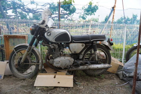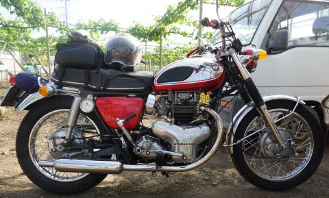 5/7 家の外でオートバイの聞き慣れた爆音がするので出てみると、YさんのカワサキW1S赤だった。