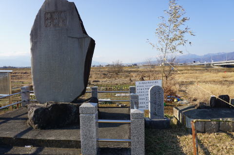 更に笛吹川(左)と釜無川(右)の合流点を目指して、走り難い砂利道を南下する。
