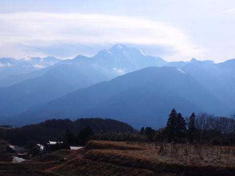 11時、南アルプス農鳥岳が辛うじて見えた。