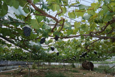 長雨による品質劣化のため、ビニール屋根下の僅か30房。
