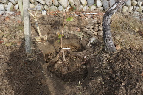 棚が空いている場所に穴を掘って植替える。