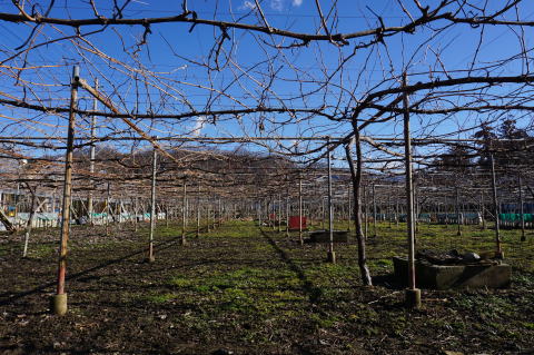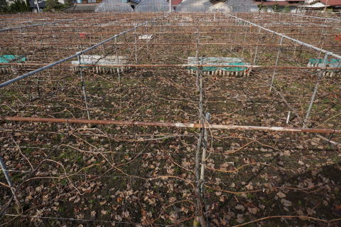 12/6 木枯らし吹きすさび完全に落葉したぶどう園。