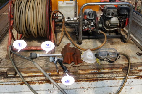 除草剤を撒いた区(左)と撒かない区(右)もテスト中。