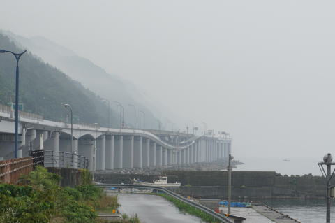 阪神高速梅田出口はビルを突き抜けている。