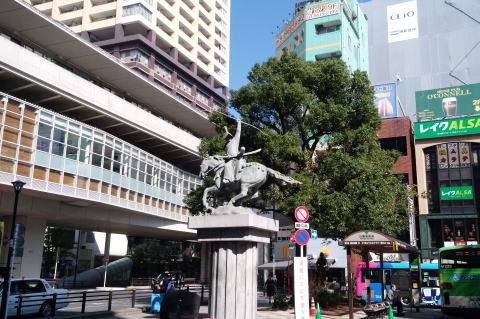 名古屋駅から歩くと、徳川家康の”しかみ像”を発見。