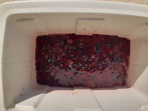 手で潰す。(今年もジュース作り)