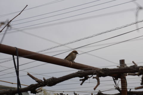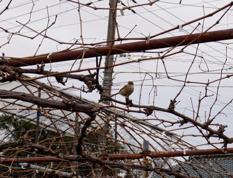 ブドウ園で作業しているとジョウビタキ(これは♀)が来る。