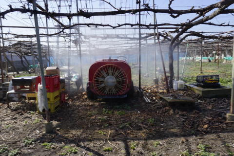 でも、発芽・展葉前の消毒は、SSのタンク・動力を使って散布竿により手撒きで行う。(消毒薬節約のため)