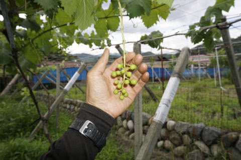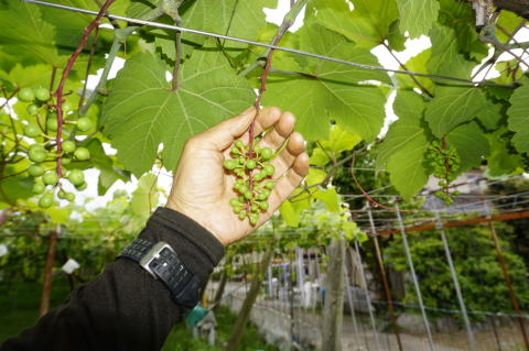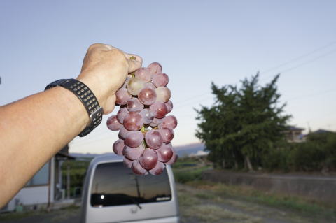 観光園ではない野趣に富んだ残り物のブドウ狩り。