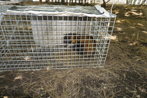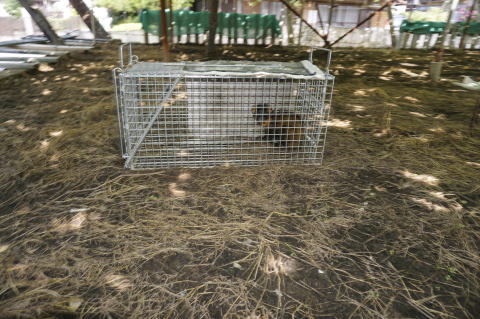 作業中イタチと思われる動物がブドウ園を2回横切ったので、捕獲檻を設置した。