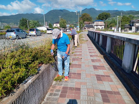 8/27 市長高校同級生後援会で根津橋の除草ボランティア活動。