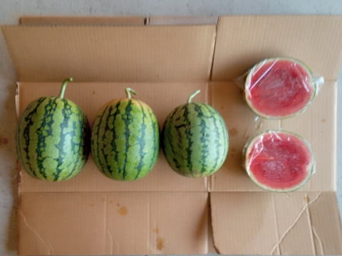 スイカを4個収穫。