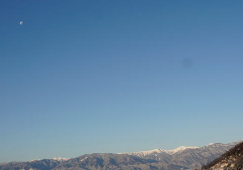 2/11早朝、月と南アルプス