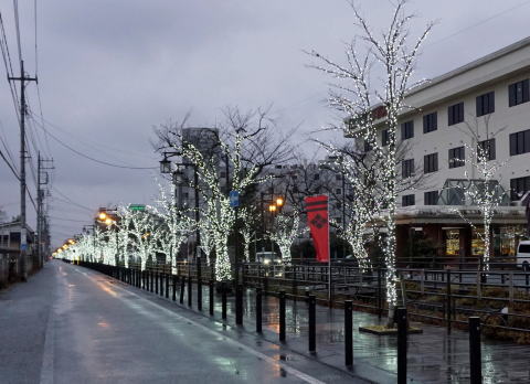 2/13夕刻、石和温泉桜並木のイルミネーション。