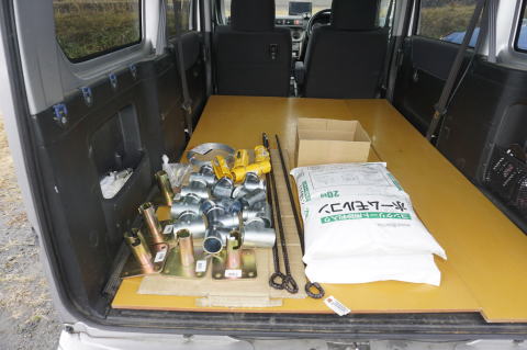 パイプ接手やセメントも購入する。