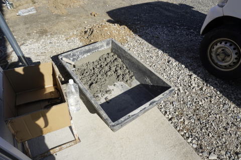 基礎用セメントを練る。