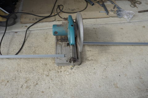鉄ノコで鉄材のサイズを調整する。