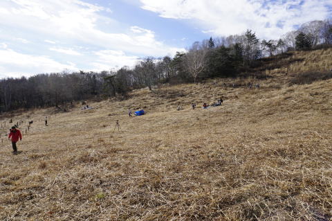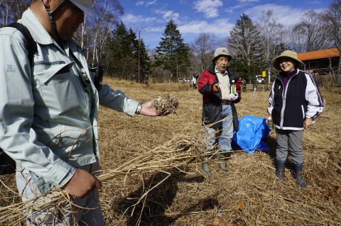 カヤを刈って草花の植生を保つ。