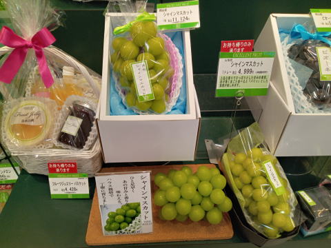 JA笛吹のハウスシャインマスカットを販売していた。一房3,980円。