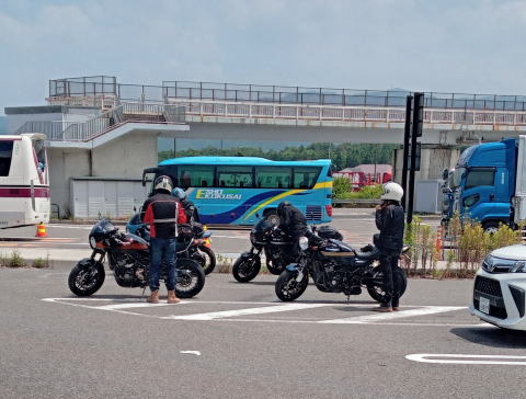 7/10 高速バスで多賀SAにて見かけた、カワサキビッグバイクツーリング4台一行。
