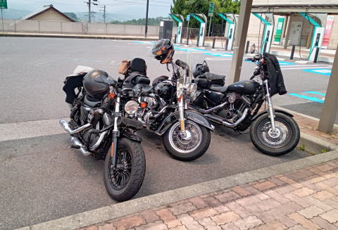 恵那SAにはハーレー3台一行。