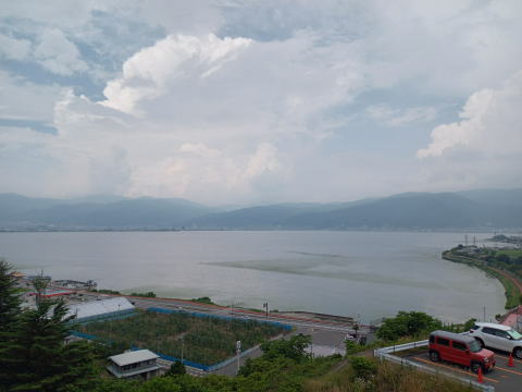 諏訪湖SAから諏訪湖。