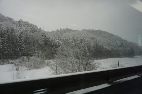 2/18 大阪 → 甲府の高速バスから関ケ原手前の雪。