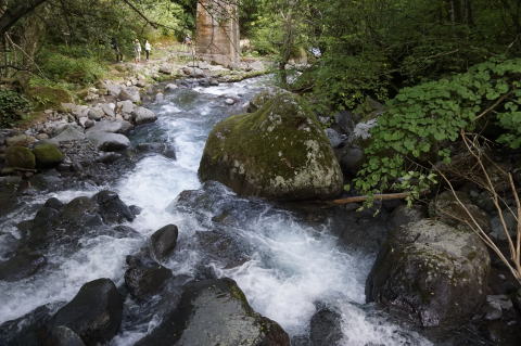 沢筋も涼しい清流を上って行くと、